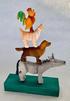 Wir schnitzen die Hauptfiguren aus dem Märchen der Brüder Grimm. Also Esel, Hund, Katze und Hahn!