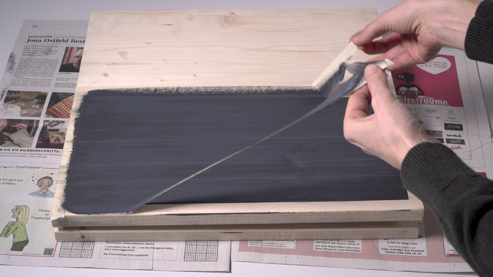 Wenn die Magnetfarbe gut durchgetrocknet ist, kann du das Malerkrepp vorsichtig abziehen.