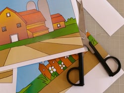 Möchtest du mir deinen geschnitzen Tieren in einem fast echten Bauernhof spielen? Dann bastle die Bauernhofbühne!