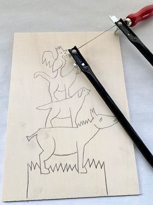 Bild 6: Mit Hilfe der Laubsäge und deine Victorinox-Schnitzmessers die Figur sorgfältig ausschneiden.