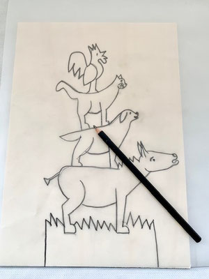 Bild 3: Übertrage die Zeichnung auf Pauspapier mit einem weichen Bleistift.